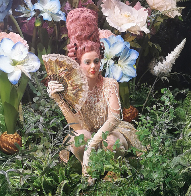 model in flowers