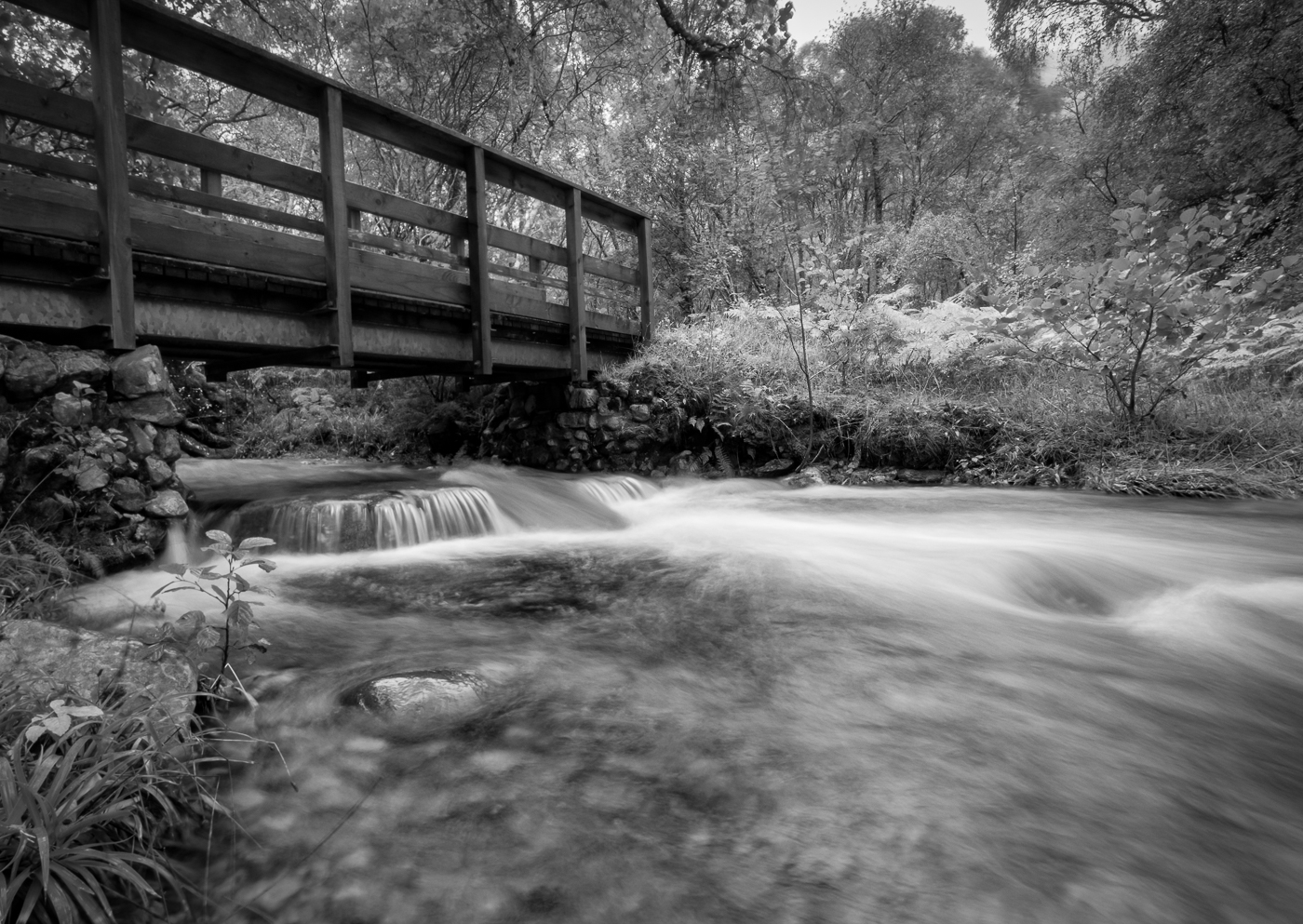 Nicely composed and looks a bit IR. Shutter speed for these images is really a matter of taste. Personally I think it is just a tad too long. A faster speed might have allowed a bit more penetration into the water on the LHS. That looks interesting. If you are using a bridge as a leading line then best to have it a bit lower.