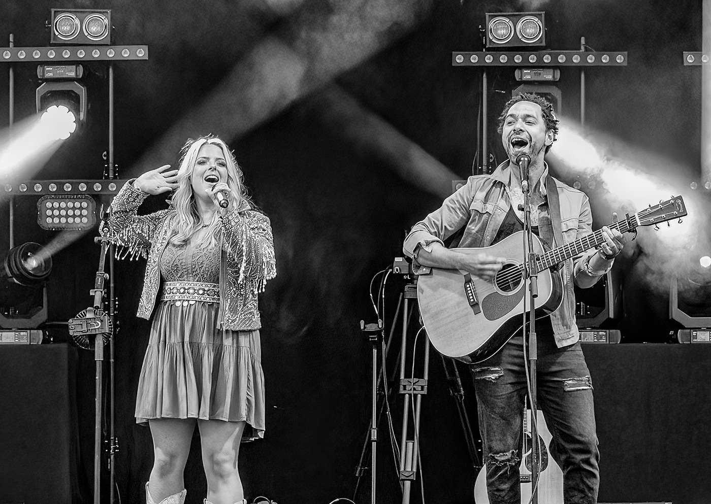 Typically, a tough subject to take being in the crowd with low light. Slight blurring on the guitar hand but the rest very sharp in focus and you get the sense of interaction with the crowd. Lights a bit blown out but doesn’t detract. Feet or no feet – I suspect that the stage got in the way. To address this I might have gone for a tighter crop on the faces – they are the starts of the image. Otherwise this is an excellent shot – might look easy to the viewer but this shot is technically very competent