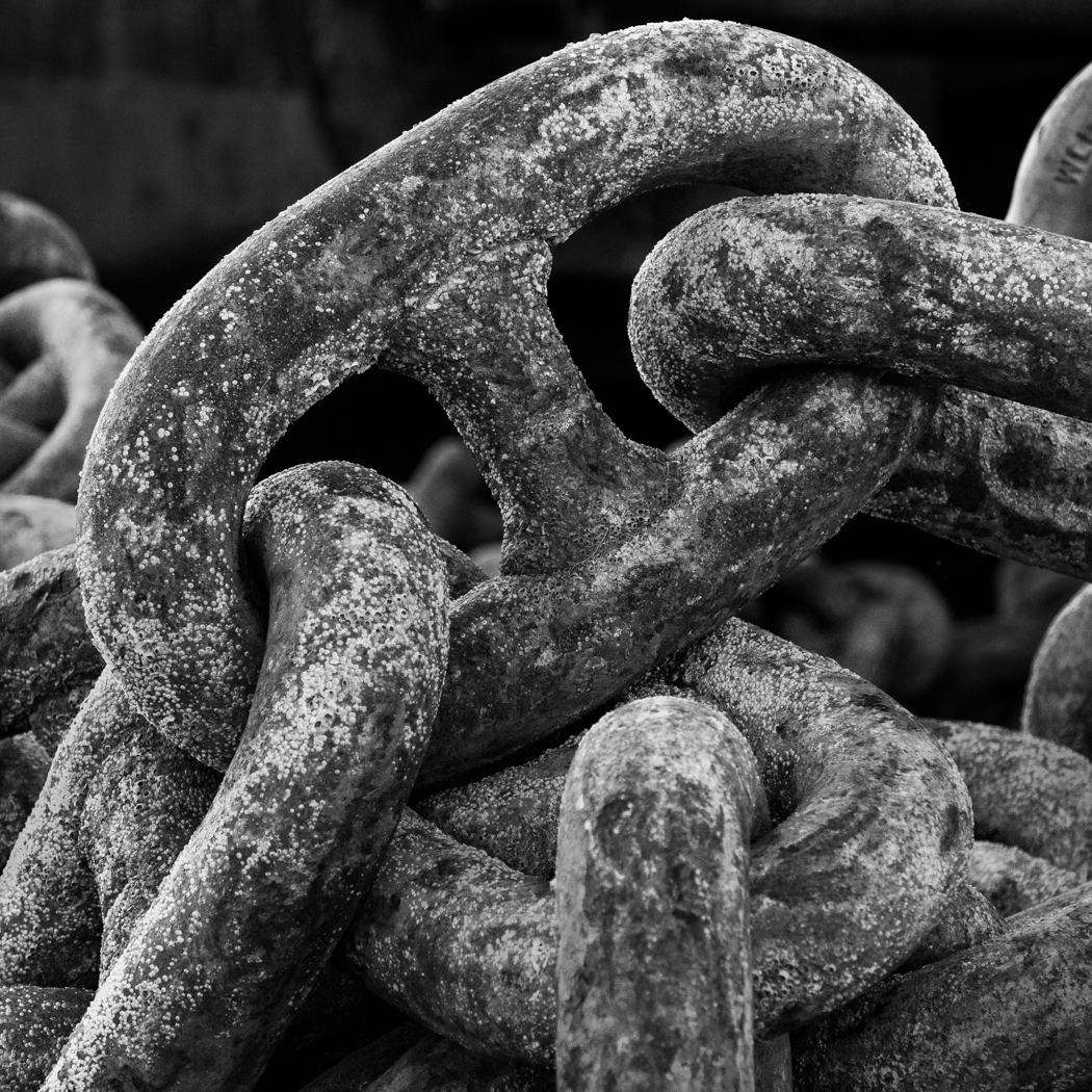 A close-up of a chain and since it has nothing else in the image, we cannot tell the size of the chain and links. This is no bad thing as it keeps you guessing.